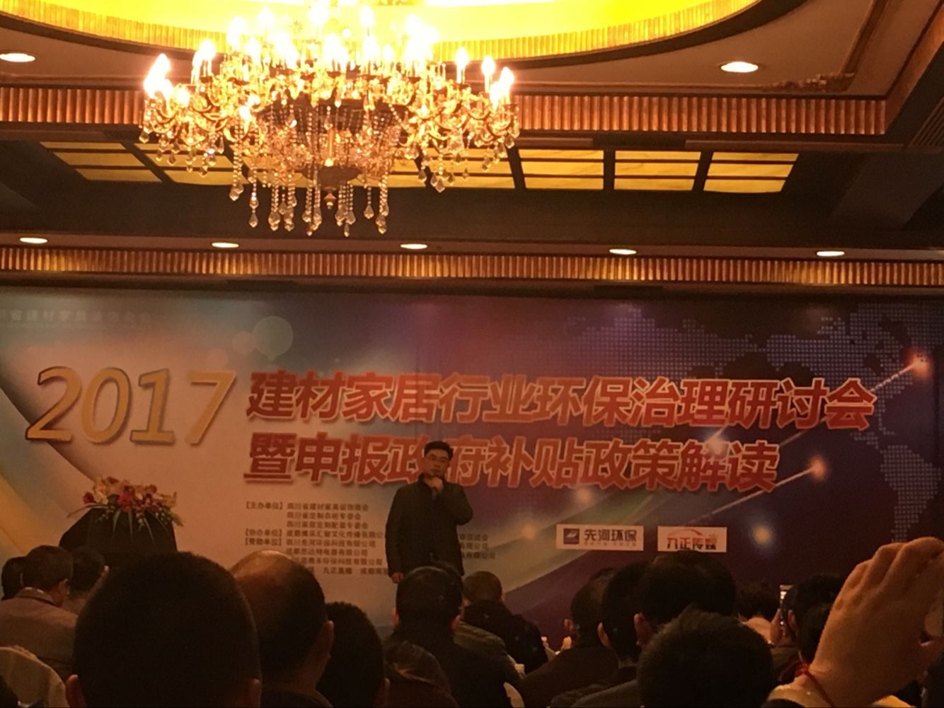 3月8日,建材家居行业环保治理研讨会在成都加州花园酒店举行,参会嘉宾有:四川环保产业协会邵志军秘书长及协会其他领导、环保部门督察组领导、四川建材家具装饰商会 杨文松会长及相关会长企业家、四川省相关环保标准制定专家:四川大学王斌副教授、VOCS治理落地企业专家、四川建材家具装饰商会专家其他企业关于环评治理专家,参会企业两百多家,为家局行业的环境治理问题进行讨论。