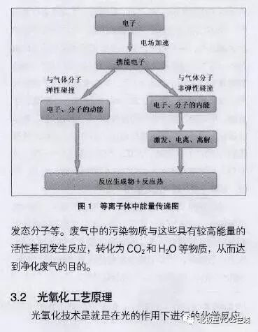 将污染物氧化为CO和H2O。光化学反应需要分子吸收特定波长的电磁辐射,受激产生分子激发态,然后会发生化学反应生成新的物质,或者变成引发热反应的中间化学产物。光化学反应的活化能来源光子的能量。